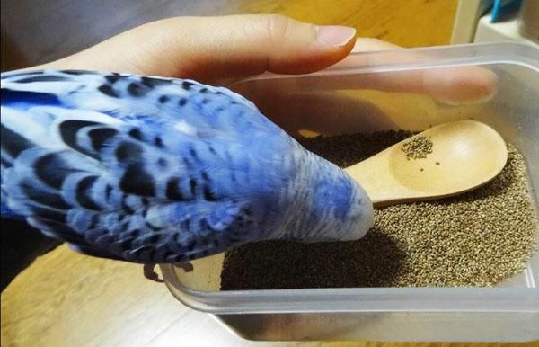 飼い主の妹はびっくりして、次は セキセイブレンド、