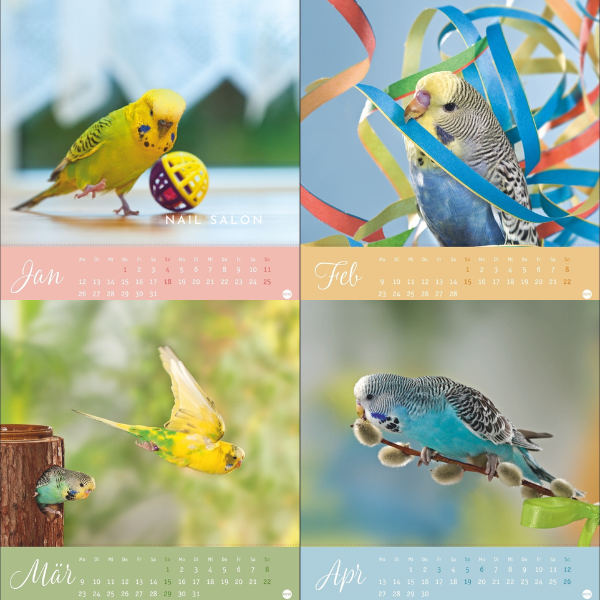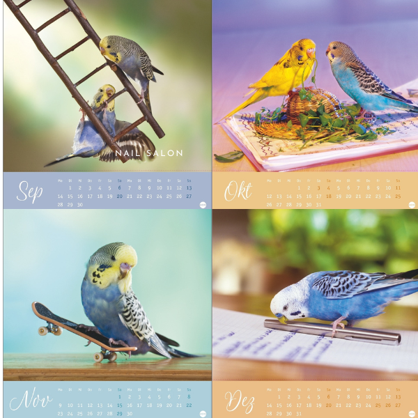 毎年大人気の、卓上型2025年度版セキセイインコカレンダー。