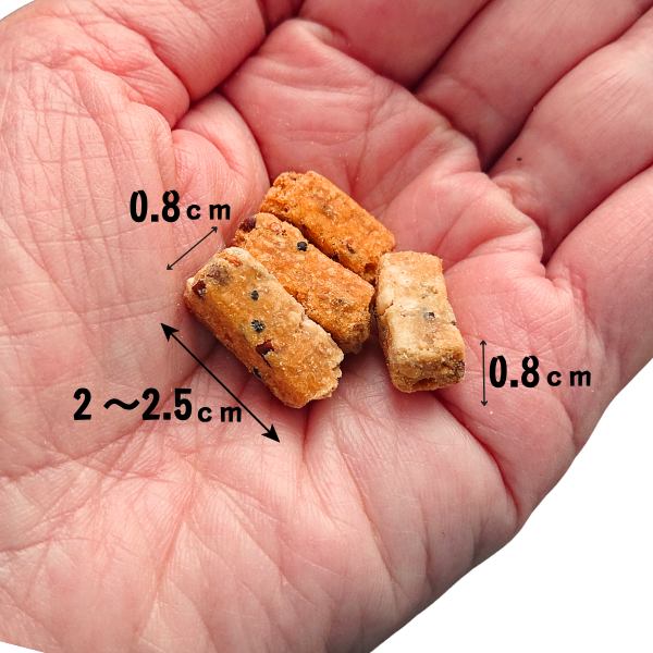 1粒の大きさ:2−2.5cmx0.8cmx0.8cm